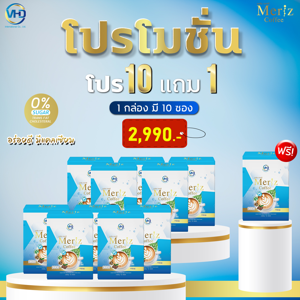 เมอริช คอฟฟี่ Meriz Coffee อร่อยดีมีแคลเซียม กาแฟของคนแคร์สุขภาพ โปรสุดคุ้ม 10 แถม 1