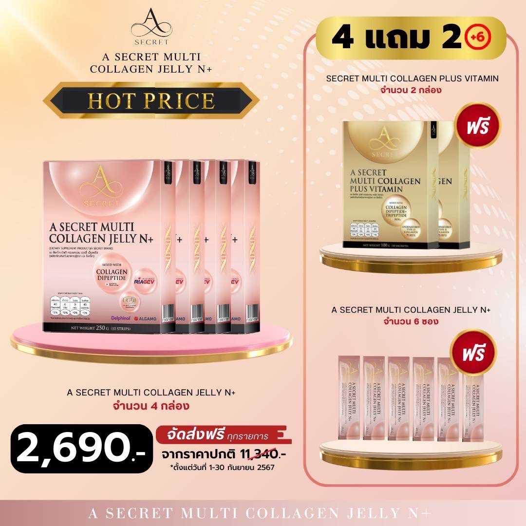 คอลลาเจน เจลลี่ 4 กล่อง แถมฟรี คอลลาเจนพลัส 2 กล่อง +คอลลาเจน เจลลี่ 6 ซอง